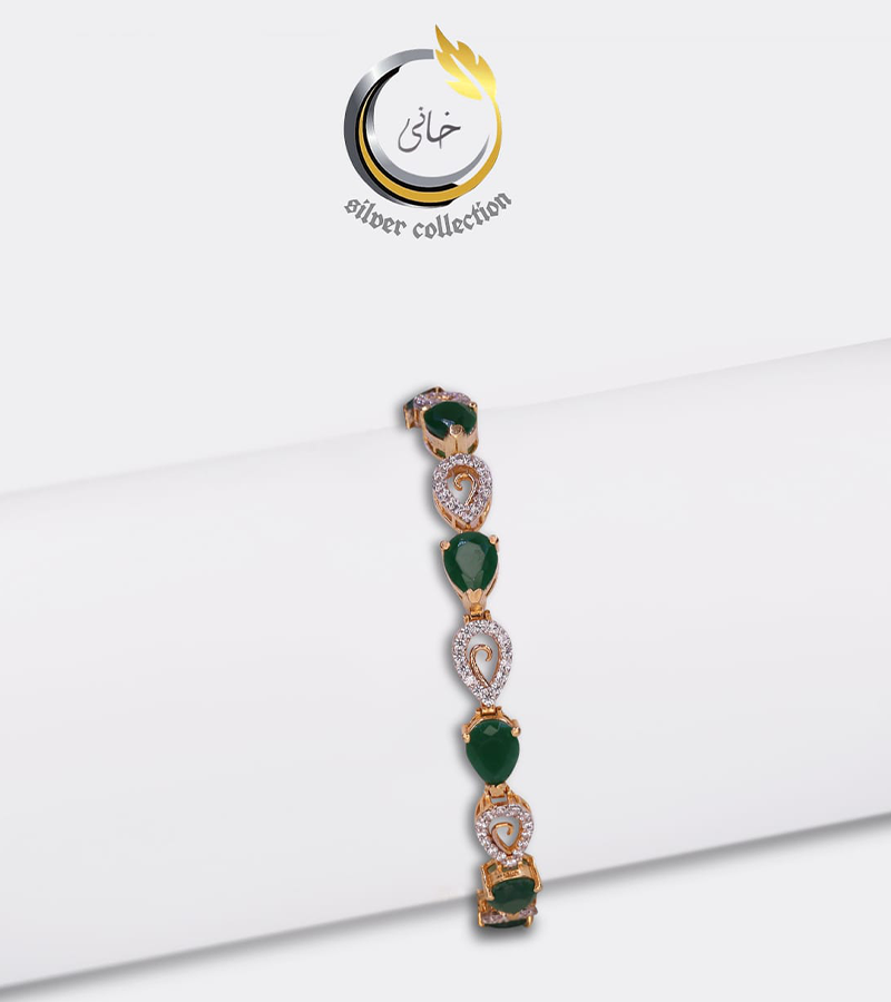 . Silver & Golden Bracelet in Green Emerald Zircon Electroplating.